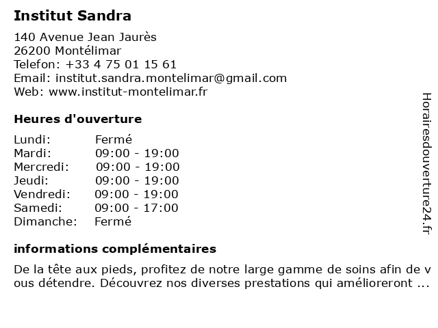 | Lundi | Fermé |