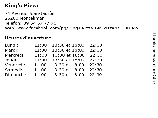 | Mardi | 11:00-13:30 et 18:00-22:30 |