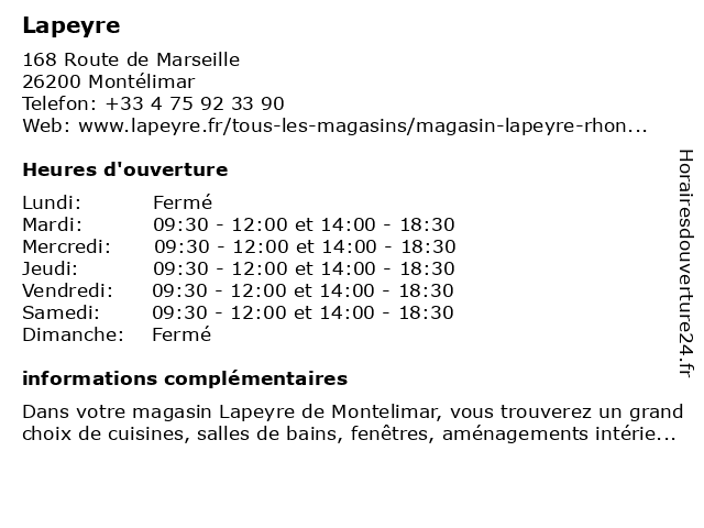 1 Lapeyre "Drive" (Distance: 0,01 km) 168 route de marseille, 26200 Montelimar "drive", chaîne, lapeyre, salles de bains et l'aménagement intérieur et extérieur de la maison, spécialisée dans les cuisines 2 Lapeyre (Distance: 48,13 km) - place tony garnier, 26000 Valence chaîne, lapeyre, salles de bains et l'aménagement intérieur et extérieur de la maison, spécialisée dans les cuisines 3 Lapeyre "Drive" (Distance: 48,13 km) - place tony garnier, 26000 Valence "drive", chaîne, lapeyre, salles de bains et l'aménagement intérieur et extérieur de la maison, spécialisée dans les cuisines |