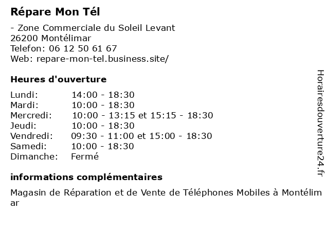 | Vendredi | 09:30-11:00 et 15:00-18:30 |