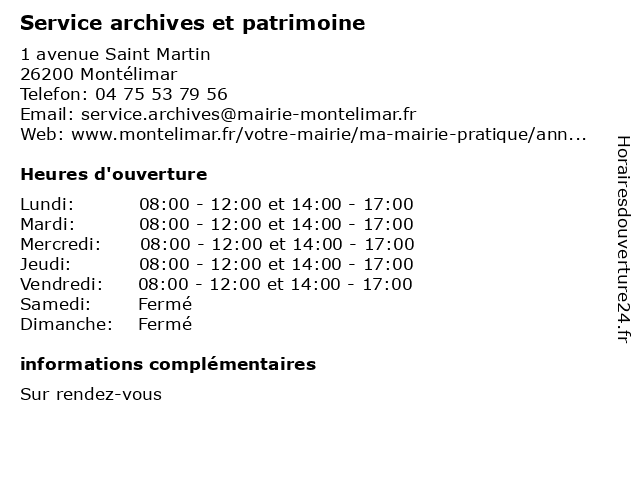 | Mardi | 08:00-12:00 et 14:00-17:00 |