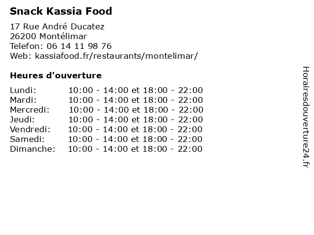Termes de recherche pour Snack Kassia Food:montelimar, snack, food, restaurants, ka, 26, kassia |