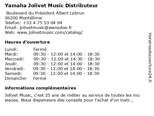 | Mardi | 09:30-12:00 et 14:00-18:30 |