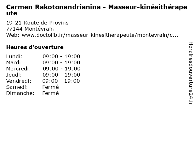 | Lundi | 09:00-19:00 |