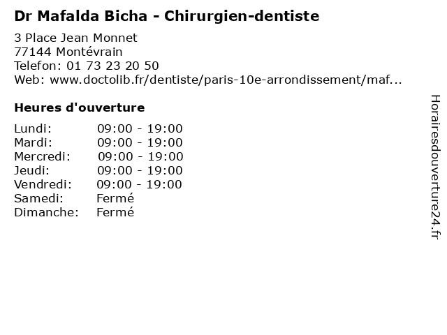 | Lundi | 09:00-19:00 |