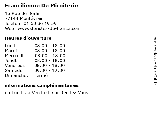 | Lundi | 08:00-18:00 |