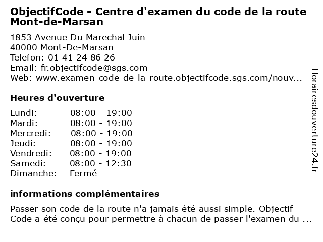 Termes de recherche pour ObjectifCode - Centre d'examen du code de la route Mont-de-Marsan:la, du, de, marsan, mont, route, centre, code, d'examen, objectifcode |