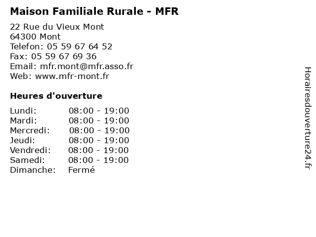 | Lundi | 08:00-19:00 |