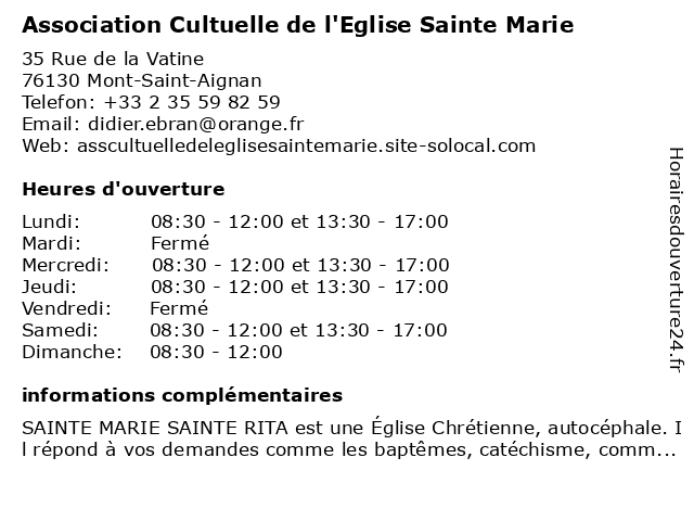 | Dimanche | 08:30-12:00 |