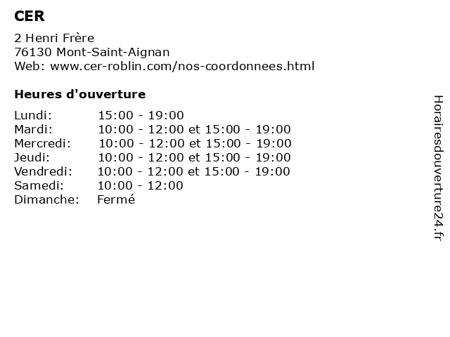 | Mercredi | 10:00-12:00 et 15:00-19:00 |