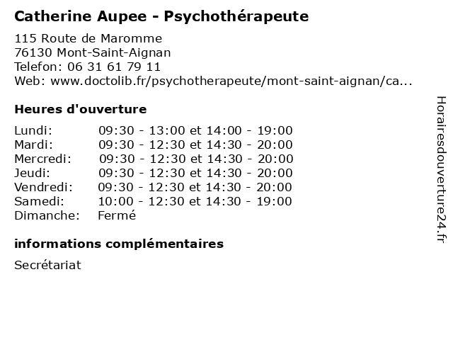 | Mardi | 09:30-12:30 et 14:30-20:00 |