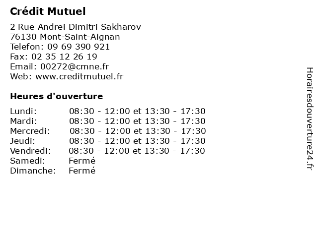 Lundi | 08:30-12:00 et 13:30-17:30 |