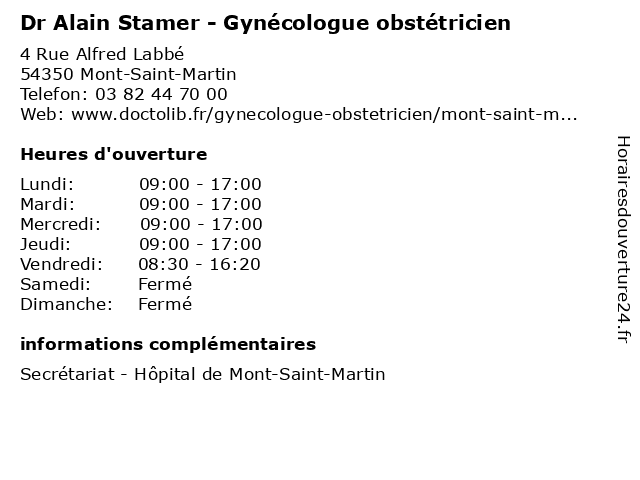 2 Opticien Mont-Saint-Martin | Alain Afflelou - Closed (Distance: 1,44 km) Centre Commercial Auchan, 54350 Mont-Saint-Martin afflelou, alain, closed, magasin de lunettes de soleil, martin, mont, opticien, optométrie, saint 3 Dr Alain Carteron - Médecin généraliste (Distance: 2,07 km) 15 Rue Voltaire, 54400 Longwy alain, carteron, consultation, docteur, dr, dr., générale, généraliste, libre, medecins, médecin, médecine, santé 4 Dr Serafeim Mantziafos - Gynécologue médical et obstétrique (Distance: 2,58 km) 5 Avenue de Saintignon, 54400 Longwy bebe, dr, et, gynecologie, gynécologue, mantziafos, maternite, médical, obstetrique, obstétrique, serafeim 5 Dr Philippe Lemarié - Gynécologue médical et obstétrique (Distance: 32,96 km) 31 rue Albert de Briey, 54150 Briey bebe, briey, de, dr, et, gynecologie, gynécologue, hôpital, lemarié, maillot, maternite, médical, obstetrique, obstétrique, philippe 6 Dr Anne-Laure de la Chapelle - Gynécologue médical et obstétrique (Distance: 32,96 km) 31 rue Albert de Briey, 54150 Briey anne, bebe, briey, chapelle, de, dr, et, gynecologie, gynécologue, hôpital, la, laure, maillot, maternite, médical, obstetrique, obstétrique |