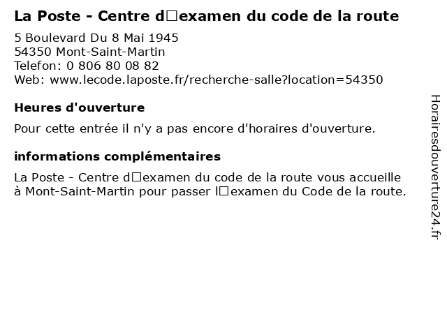 | Appeler La Poste - Centre d’examen du code de la route | |