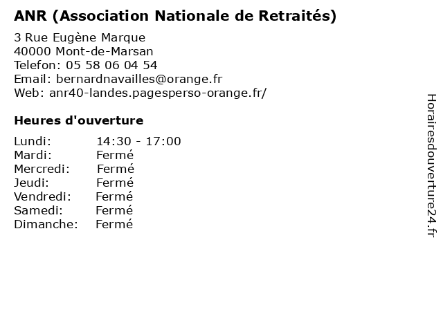 | Samedi | Fermé |