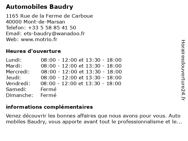 | Lundi | 08:00-12:00 et 13:30-18:00 |