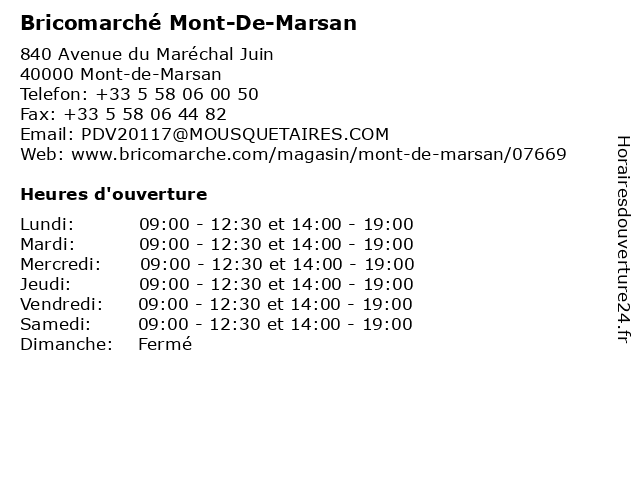 | Mardi | 09:00-12:30 et 14:00-19:00 |
