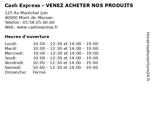 | Mardi | 10:00-12:30 et 14:00-19:00 |
