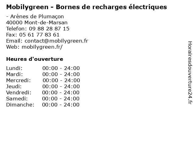 1 Mobilygreen - Bornes de recharges électriques (Distance: 0,11 km) n/a Avenue de la Laïcité, 40000 Mont-de-Marsan automobile, borne, bornes, de, mobilygreen, recharge, recharges, électrique, électriques 2 Mobilygreen - Bornes de recharges électriques (Distance: 0,13 km) 1 Rue Fernand Tassine, 40000 Mont-de-Marsan automobile, borne, bornes, de, mobilygreen, recharge, recharges, électrique, électriques 3 Mobilygreen - Bornes de recharges électriques (Distance: 3,14 km) 1366 Avenue du Maréchal Juin, 40000 Mont-de-Marsan automobile, borne, bornes, de, mobilygreen, recharge, recharges, électrique, électriques 4 Mobilygreen - Bornes de recharges électriques (Distance: 3,38 km) 71 Rue de la Ferme de Carboue, 40000 Mont-de-Marsan automobile, borne, bornes, de, mobilygreen, recharge, recharges, électrique, électriques 5 Mobilygreen - Bornes de recharges électriques (Distance: 5,70 km) - Allée de Mamourra, 40090 Saint Avit automobile, borne, bornes, de, mobilygreen, recharge, recharges, électrique, électriques 6 Mobilygreen - Bornes de recharges électriques (Distance: 7,45 km) 15 Avenue de Pendele, 40090 Saint-Perdon automobile, borne, bornes, de, mobilygreen, recharge, recharges, électrique, électriques |