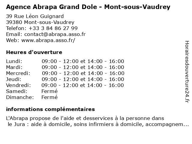 Termes de recherche pour Agence Abrapa Grand Dole - Mont-sous-Vaudrey:sous, dole, grand, mont, agence, aide à domicile, services à la personne, jura, vaudrey, ssiad, téléassistance, mont-sous-vaudrey, soins infirmiers à domicile, abrapa, accompagnement du handicap, aide aux familles, ateliers prévention, grand dole |