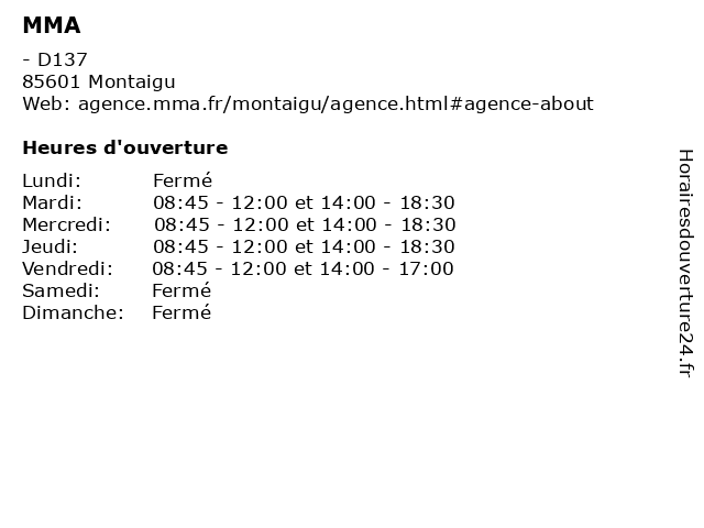| Mardi | 08:45-12:00 et 14:00-18:30 |