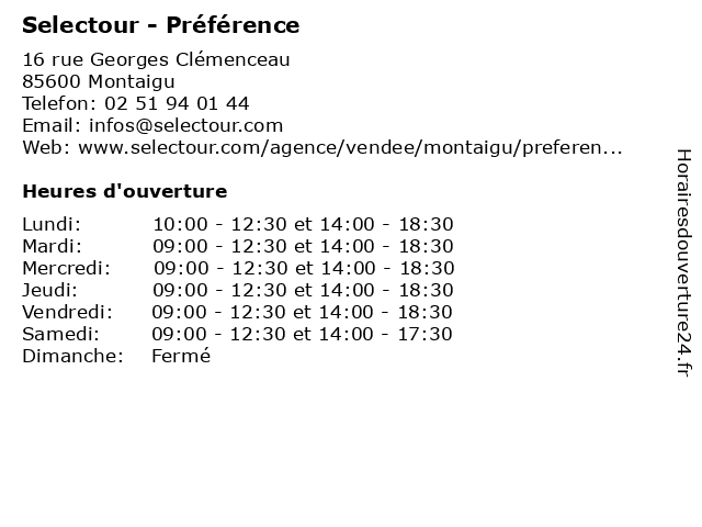 | Vendredi | 09:00-12:30 et 14:00-18:30 |