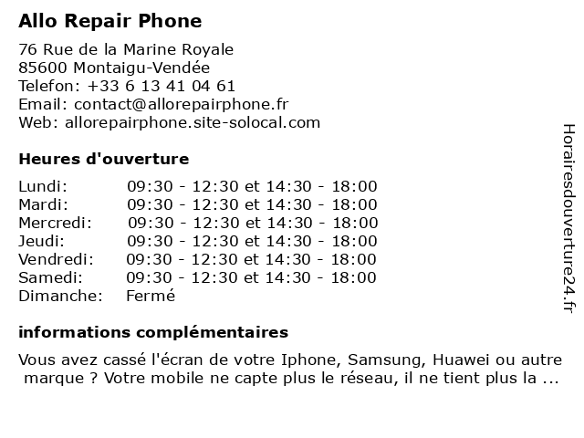 | Mardi | 09:30-12:30 et 14:30-18:00 |