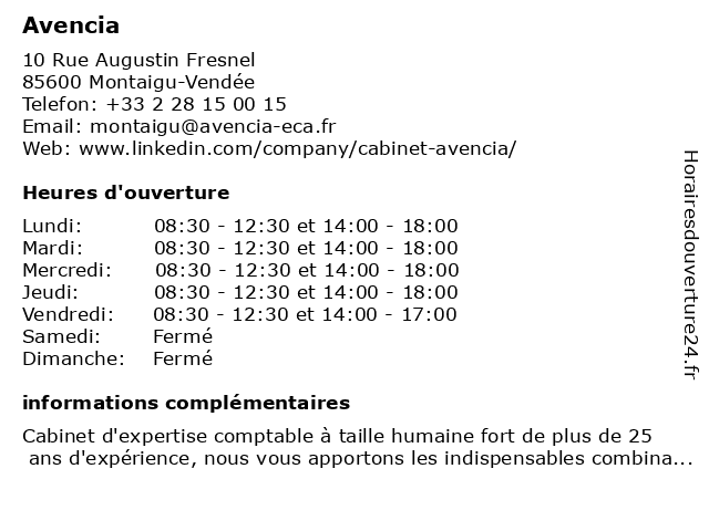 4 Avencia Chantonnay (Distance: 39,29 km) 38 Avenue de Lattre de Tassigny, 85110 Chantonnay avencia, chantonnay 6 |