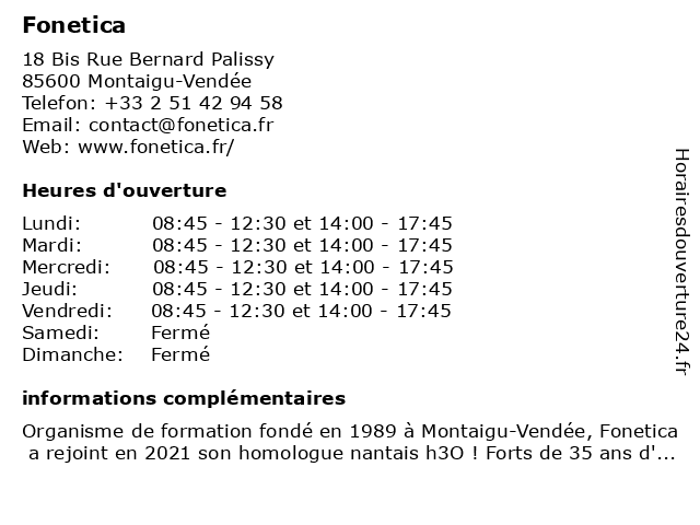 Organisme de formation fondé en 1989 à Montaigu-Vendée, Fonetica a rejoint en 2021 son homologue nantais h3O ! Forts de 35 ans d'expertise, nous Å?uvrons au service du développement des riche...