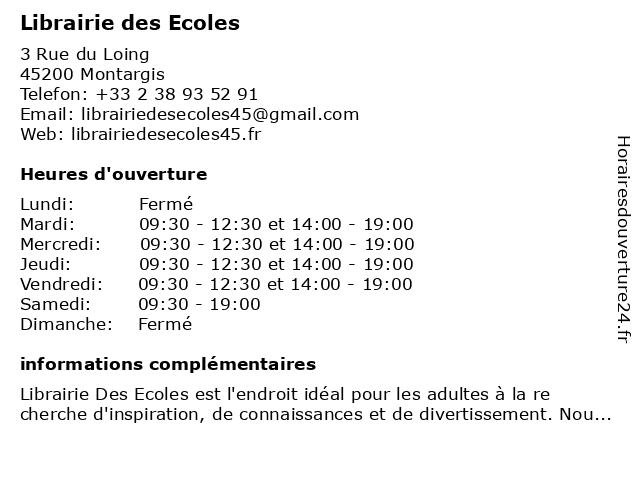 | Mardi | 09:30-12:30 et 14:00-19:00 |