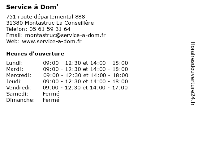 | Lundi | 09:00-12:30 et 14:00-18:00 |