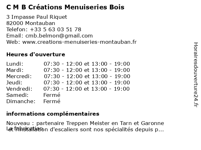 | Lundi | 07:30-12:00 et 13:00-19:00 |