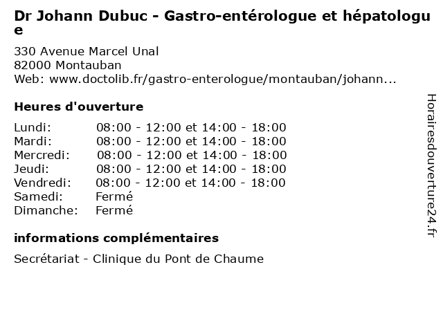 1 Dr Patrice Pienkowski - Gastro-entérologue et hépatologue - secrétariat (Distance: 0,00 km) 330 Avenue Marcel Unal, 82000 Montauban dr, entérologue, et, gastro, hépatologue, médecins, médicaments, patrice, pienkowski, santé, secrétariat, spécialiste 2 Dr Jérome Sanchez - Gastro-entérologue et hépatologue (Distance: 0,04 km) 330 avenue Marcel Unal, 82000 Montauban consultation, docteur, dr, entérologue, et, gastro, hépatologue, jérome, med, médecin, sanchez, traitement 3 Dr Max Pierre-Nicolas - Gastro-entérologue et hépatologue (Distance: 0,04 km) 330 Avenue Marcel Unal, 82000 Montauban dr, enterelogue, entérologue, et, gastro, hepatolgue, hépatologue, max, nicolas, pierre, soins 4 Dr Patrick Madonia - Gastro-entérologue et hépatologue (Distance: 0,04 km) 330 Avenue Marcel Unal, 82000 Montauban chaume, clinique, dr, endoscopie, entérologie, entérologue, et, gastro, hépatologue, interventionnelle, madonia, médicale, patrick, pont, proctologie 5 Dr Charles-Henri Pineau - Gastro-entérologue et hépatologue (Distance: 1,22 km) 40 Avenue Charles de Gaulle, 82000 Montauban charles, dr, entérologue, et, gastro, henri, hépatologue, pineau 6 Dr Pierre Grousseau - Gastro-entérologue et hépatologue (Distance: 1,22 km) 40 Avenue Charles de Gaulle, 82000 Montauban dr, entérologue, et, gastro, grousseau, hépatologue, pierre |