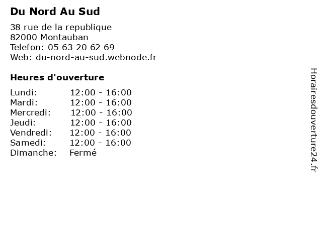 1 Brasserie Du Nord au Sud (Distance: 0,00 km) 38 Rue de la République, 82000 Montauban au, biardoux, brasserie, du, nord, restaurants, sud, valerie, vandewalle 2 Crédit Agricole Nord Midi Pyrénées (Distance: 0,29 km) 74 Avenue Gambetta, 82000 Montauban agence, agricole, assurance, bancaire, banque, crédit, midi, nord, pyrénées 3 Crédit Agricole Nord Midi Pyrénées (Distance: 1,20 km) 1 Avenue du 10' Dragon, 82000 Montauban agence, agricole, assurance, bancaire, banque, crédit, midi, nord, pyrénées 4 Crédit Agricole Nord Midi Pyrénées (Distance: 2,15 km) 160 Avenue Marcel Unal, 82000 Montauban agence, agricole, assurance, bancaire, banque, crédit, midi, nord, pyrénées 5 Pôle Emploi Montauban Nord (Distance: 2,21 km) 124 Rue de Pater, 82000 Montauban administration, agence, candidats, emploi, employeurs, montauban, nord, offres, pole, public, publique, pôle, recherche, service, travail 6 Crédit Agricole Nord Midi Pyrénées (Distance: 5,62 km) 23 Place du Centre Commercial, 82710 Bressols agence, agricole, assurance, bancaire, banque, crédit, midi, nord, pyrénées |