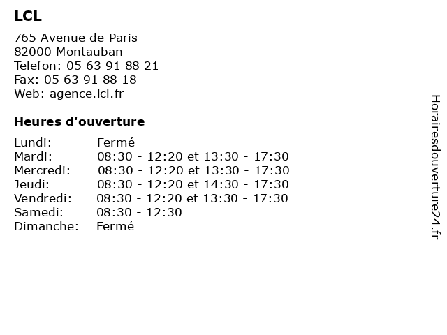| Lundi | Fermé |
