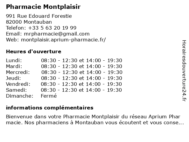 | Lundi | 08:30-12:30 et 14:00-19:30 |