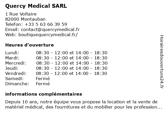 | Lundi | 08:30-12:00 et 14:00-18:30 |
