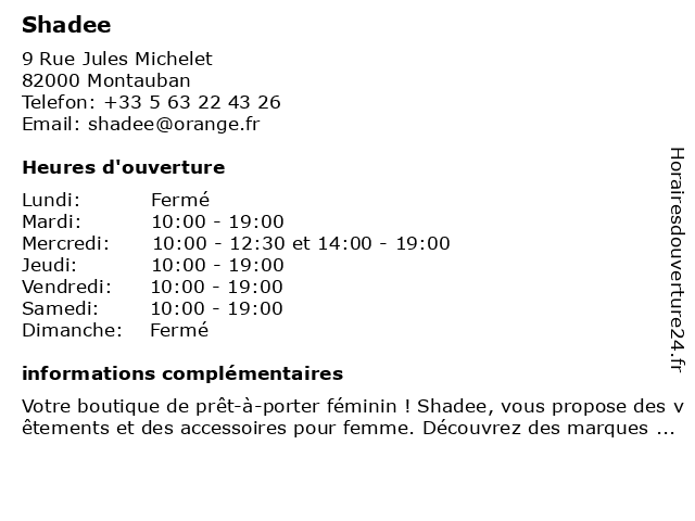 | Mercredi | 10:00-12:30 et 14:00-19:00 |
