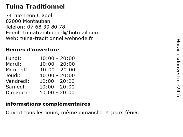 | Dimanche | 10:00-20:00 |