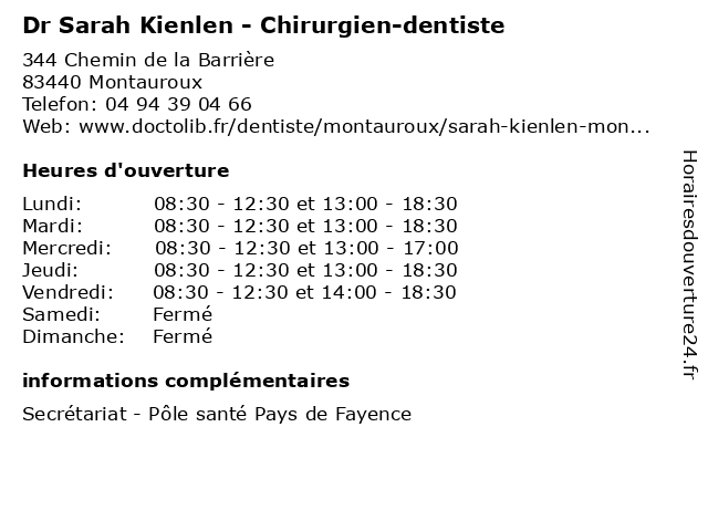 | Lundi | 08:30-12:30 et 13:00-18:30 |