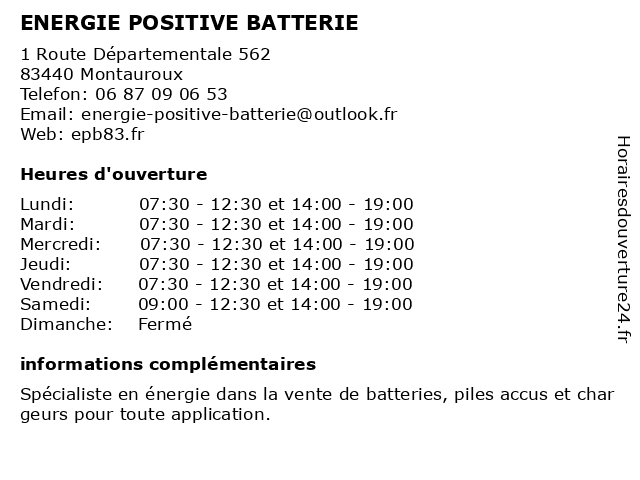 | Samedi | 09:00-12:30 et 14:00-19:00 |