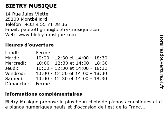 | Mardi | 10:00-12:30 et 14:00-18:30 |