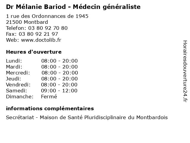| Lundi | 08:00-20:00 |