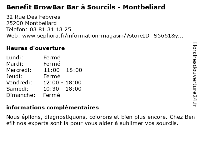 Termes de recherche pour Benefit BrowBar Bar à Sourcils - Montbeliard:bar, salon de beauté, montbeliard, benefit, sourcils, magasin de produits cosmétiques, browbar |