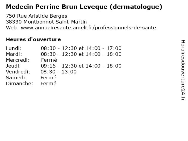 | Lundi | 08:30-12:30 et 14:00-17:00 |