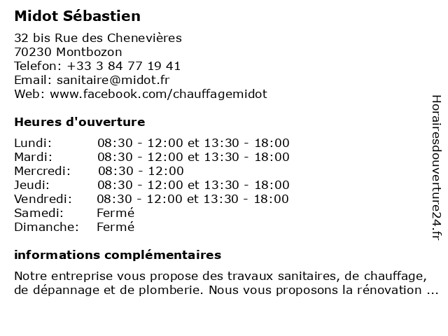 | Lundi | 08:30-12:00 et 13:30-18:00 |