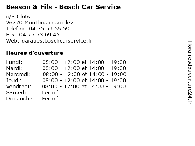| Lundi | 08:00-12:00 et 14:00-19:00 |