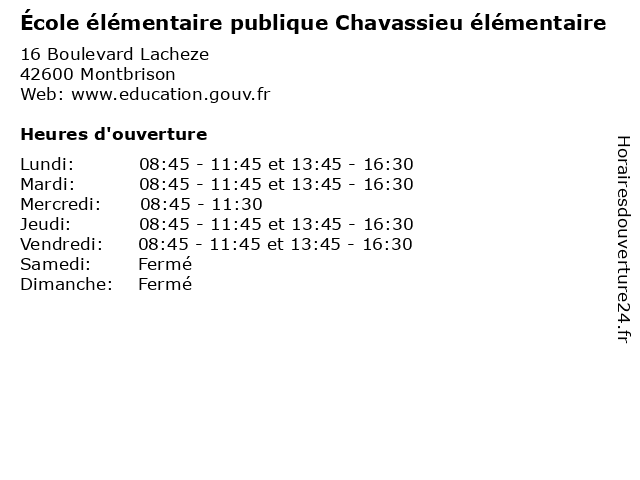| Lundi | 08:45-11:45 et 13:45-16:30 |