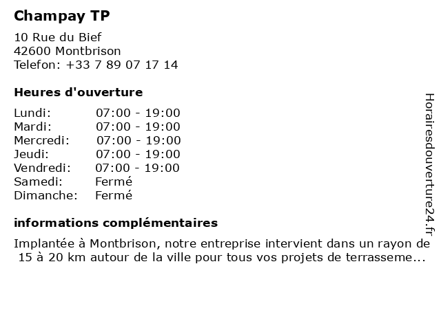 1 Gourbière-Gachet TP (Distance: 1,96 km) 14 Rue des Roseaux Verts, 42600 Montbrison gachet, gourbière, tp 3 Entreprise Générale Bâtiment Et TP Beny Et Fils (Distance: 10,35 km) 225 Rue du 11 Novembre, 42210 L'Hôpital-le-Grand beny, bâtiment, entreprise, et, fils, générale, tp 6 |