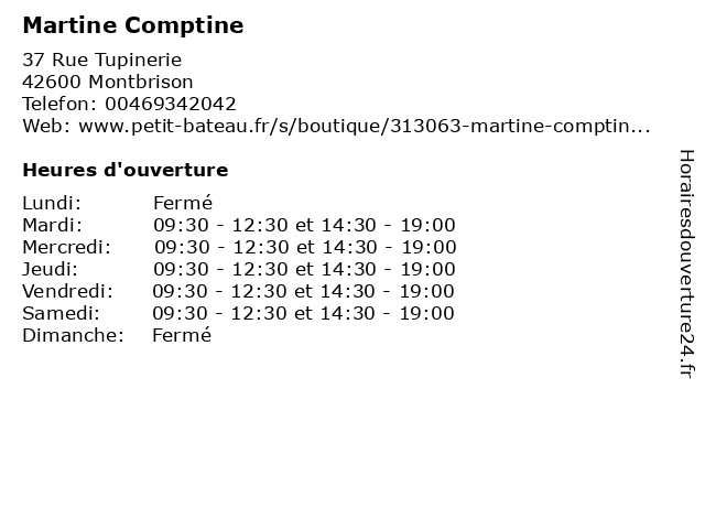 | Samedi | 09:30-12:30 et 14:30-19:00 |